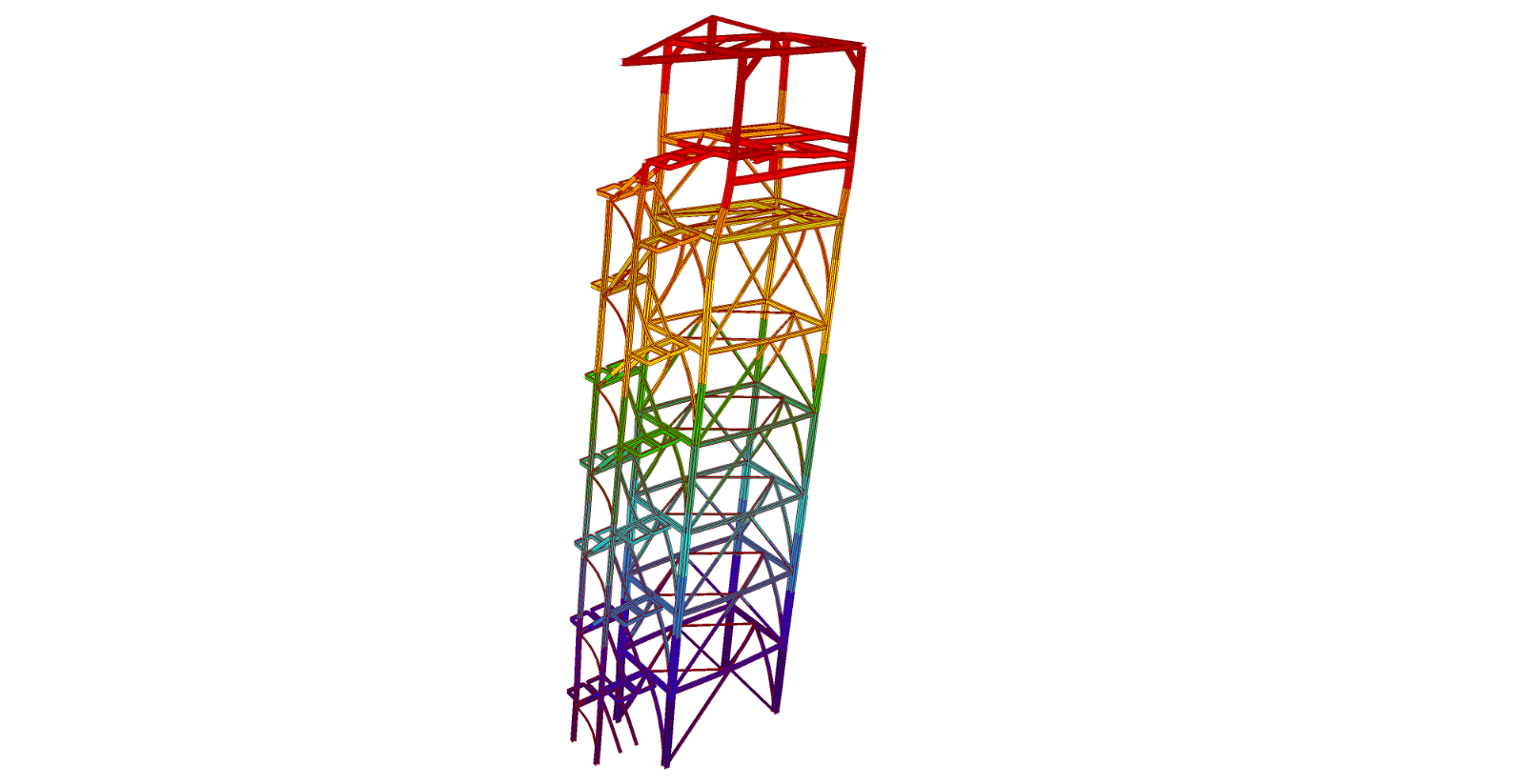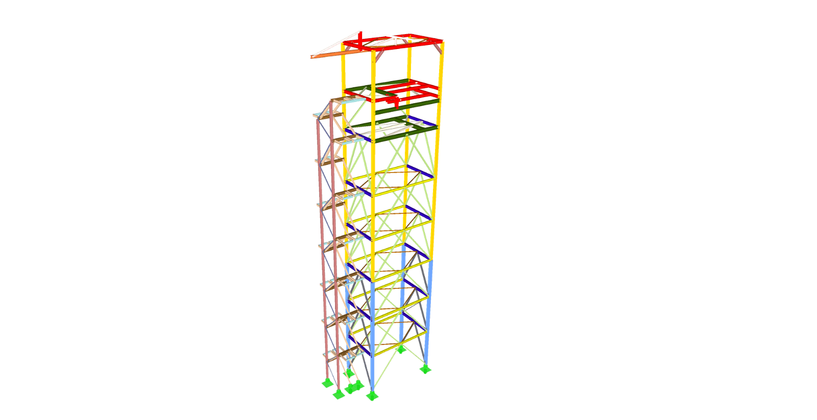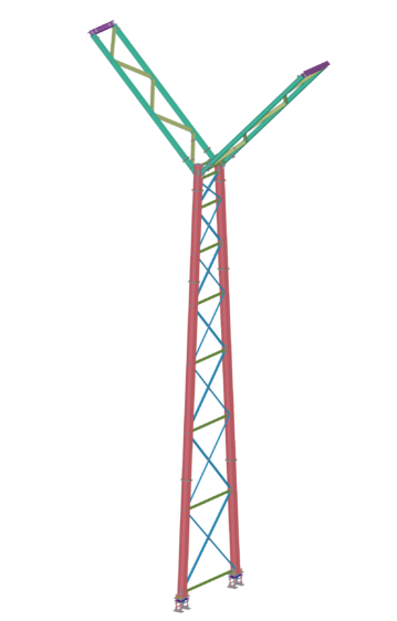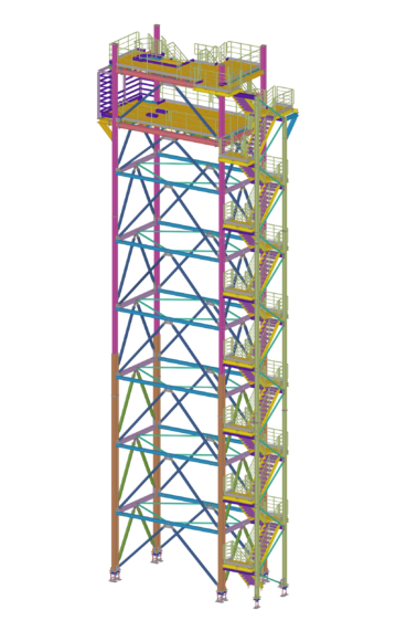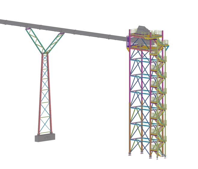 układ konstrukcyjny wieży przesypowej – przestrzenna kratownica pionowa. Słupy oraz belki poziome