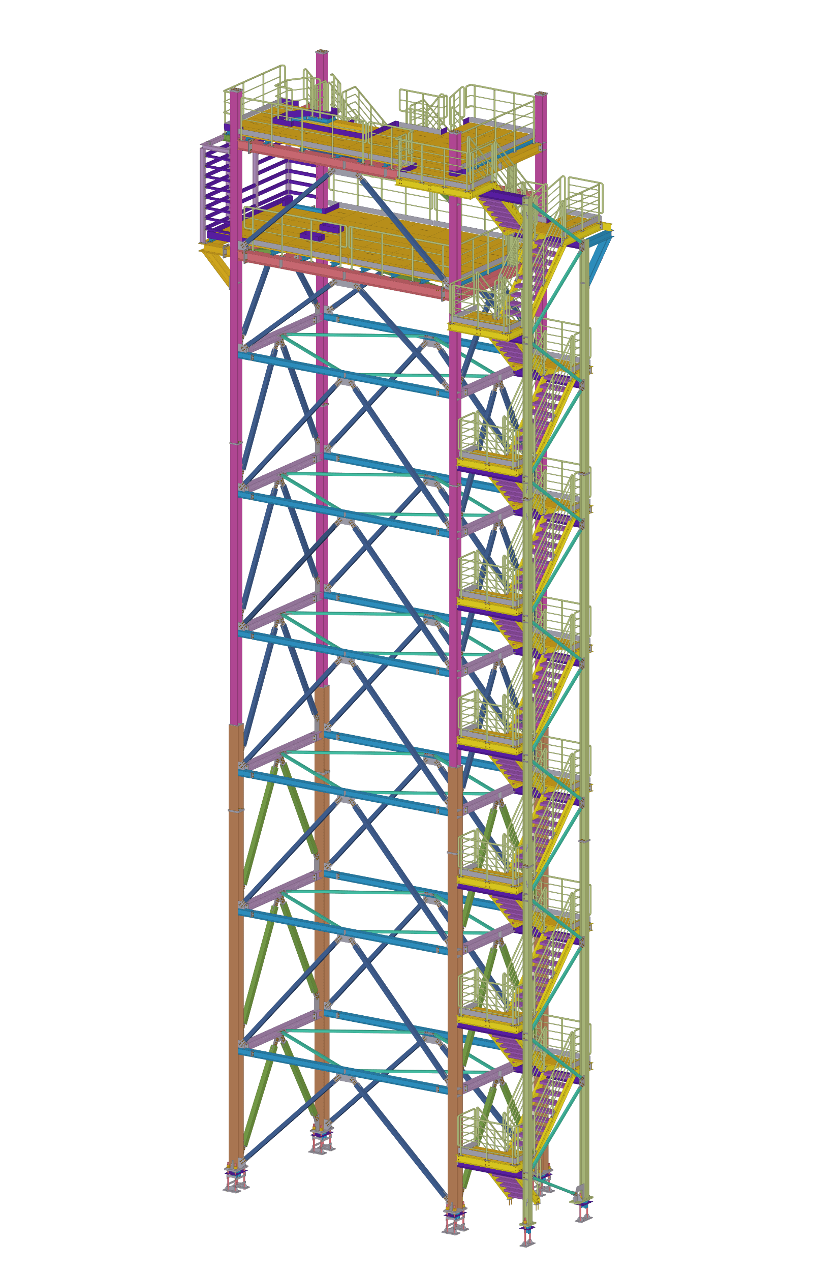– profile HEA. Stężenia oraz tężniki – profile zamknięte SHS. Klatka schodowa połączona jest do wieży