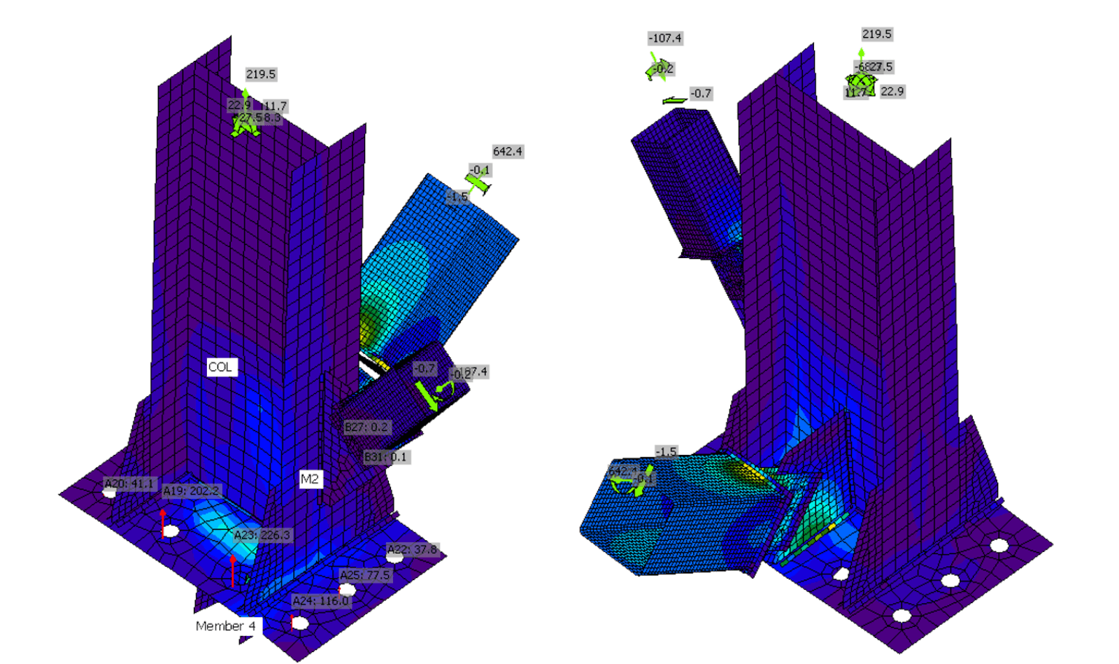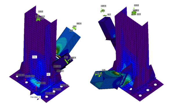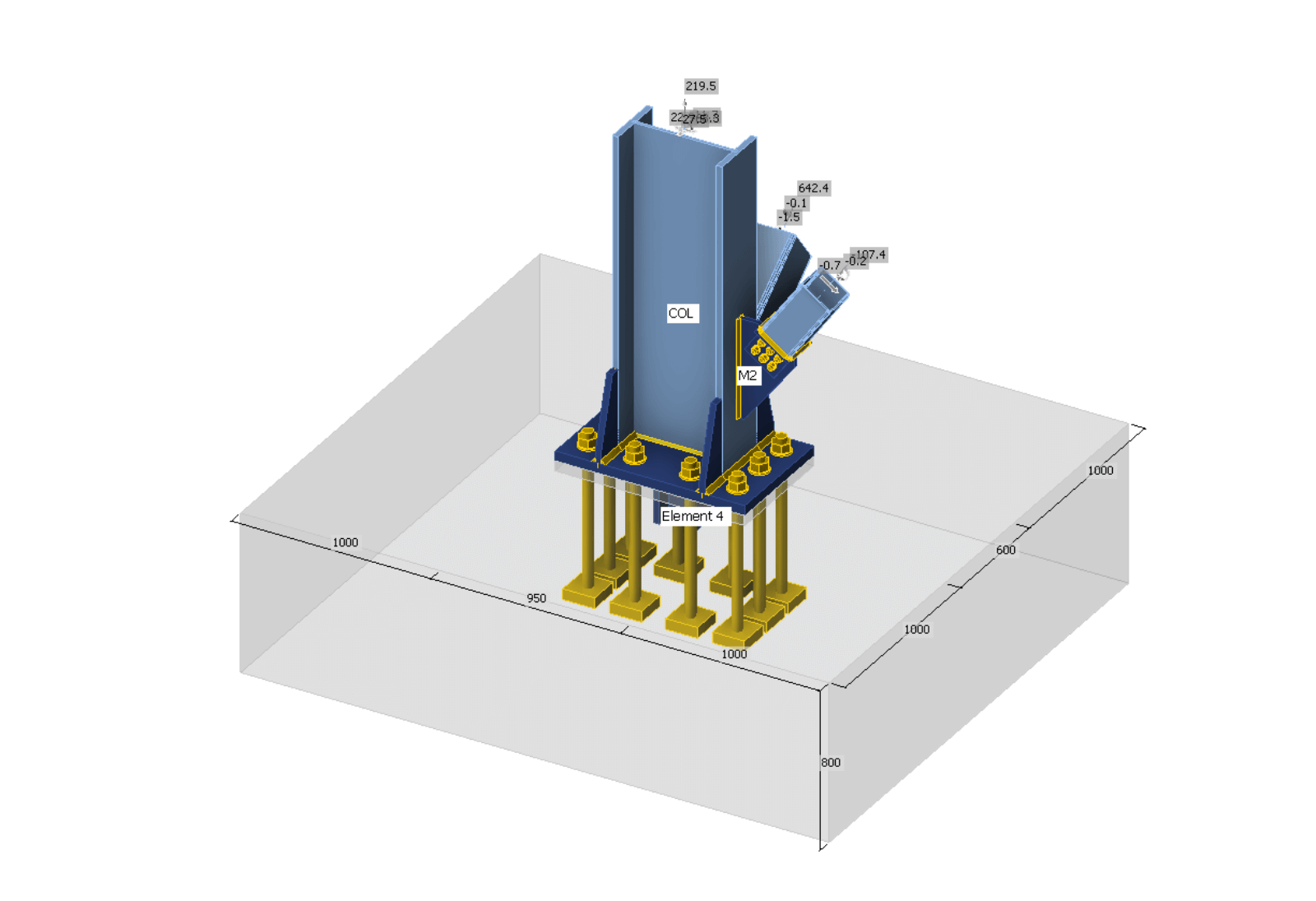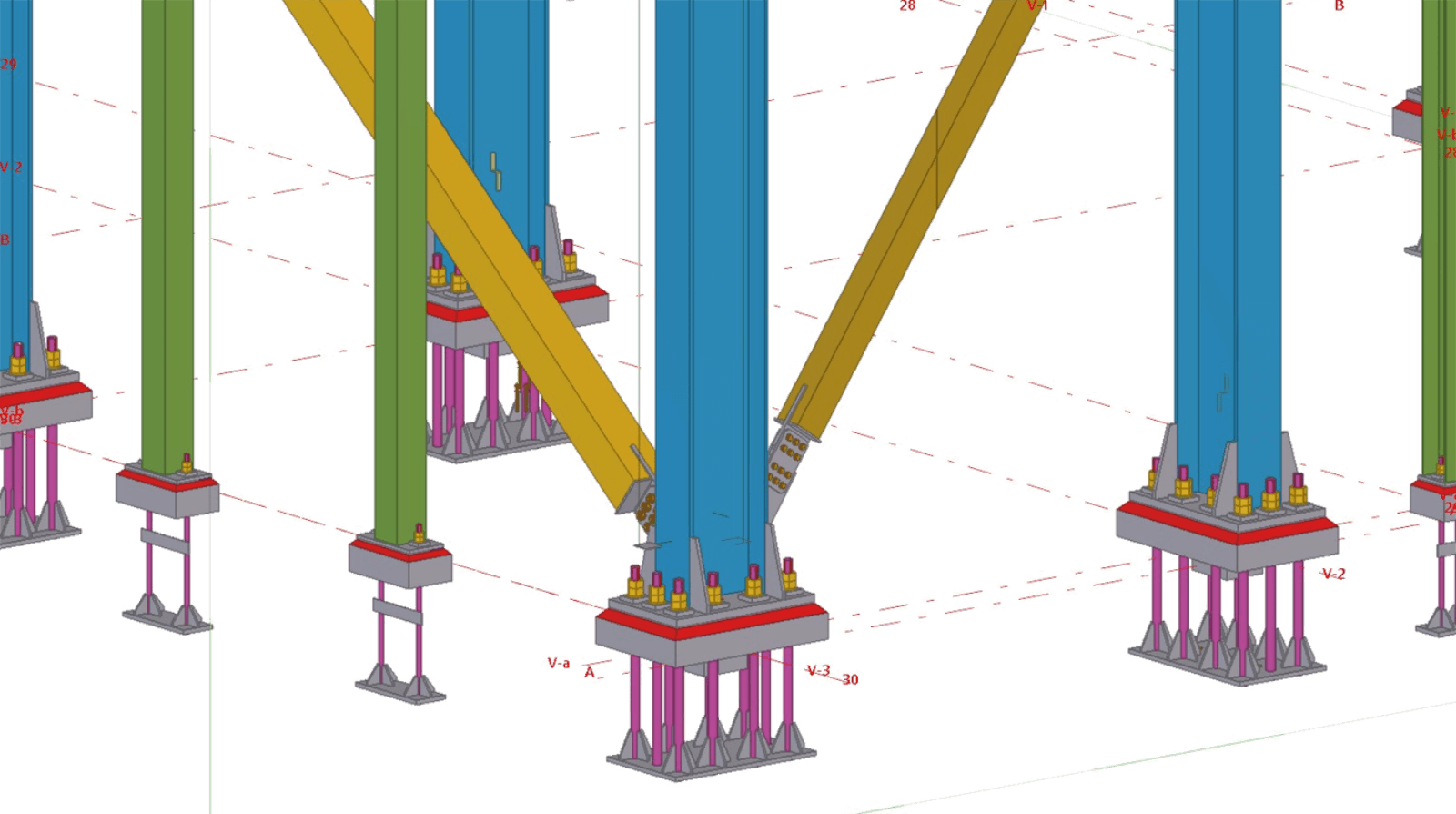 do słupów. Konstrukcja jest sztywno połączona ze słupami utwierdzonymi w fundamencie.